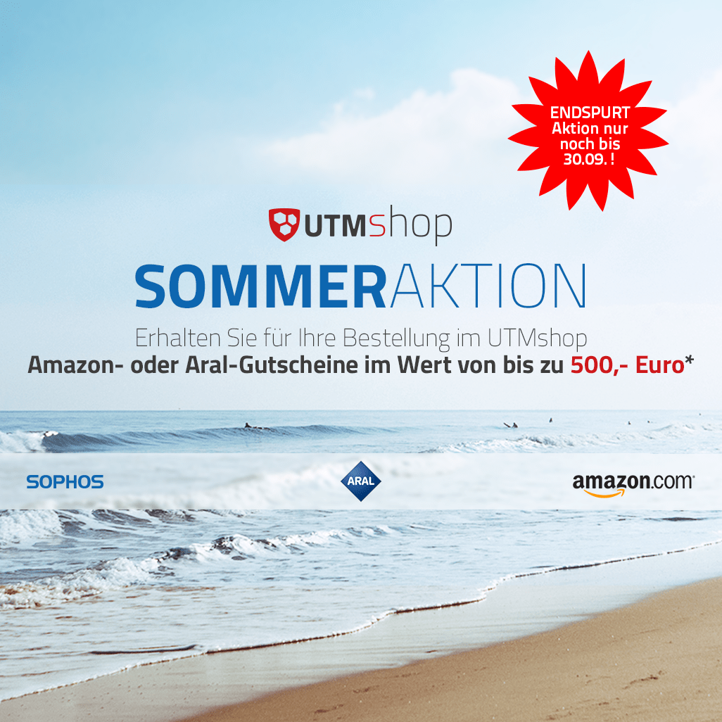 Sommeraktion für Bestellungen im UTM-shop - Amazon und Aral Gutscheine für Ihre Sophos Bestellung