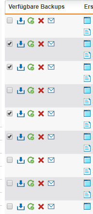 - Checkboxen mehrerer Backups anwählen und anschließend auf Ausgewählte Backups löschen klicken