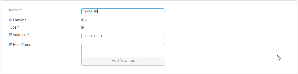 - Klicken Sie auf Hinzufügen, um eine NAT-Richtlinie hinzuzufügen. Geben Sie einen Namen für die NAT-Richtlinie ein und wählen Sie den in Schritt 1 erstellten IP-Host aus.