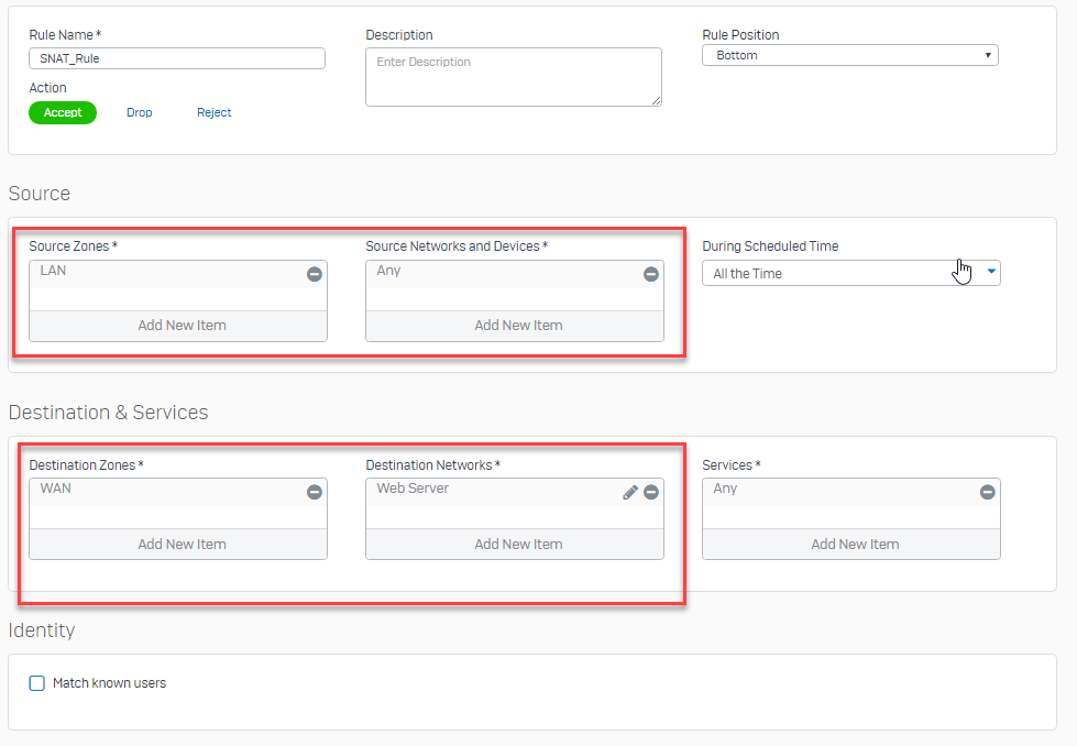 Wir werden eine SNAT-Richtlinie erstellen, um den gesamten LAN-Verkehr an den externen Webserver zu senden, um die IP 11.11.11.10 anstelle der Standard-Gateway-IP von 11.11.11.9 zu verwenden.