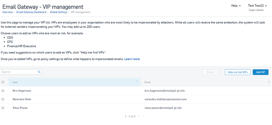 VIPs sind Angestellte einer Organisation, für die sich die Angreifer einer Phishing Attacke am wahrscheinlichsten ausgeben. Während alle Benutzer denselben Schutz genießen, kann das System für bis zu 200 VIPs und Kunden prüfen, ob es sich bei einem Absender um eine Fälschung handelt.