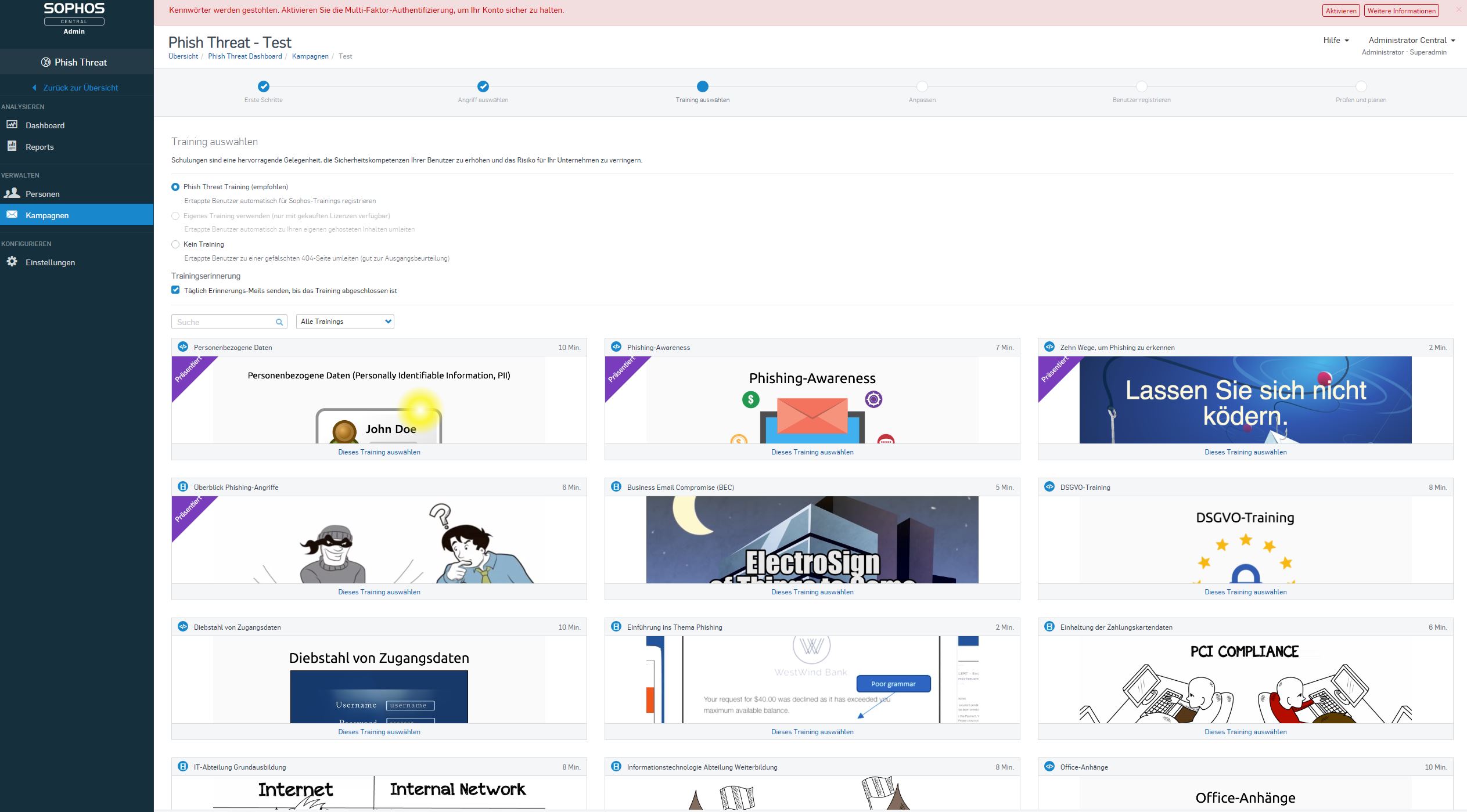 Phish Threat ist Teil von Sophos Central