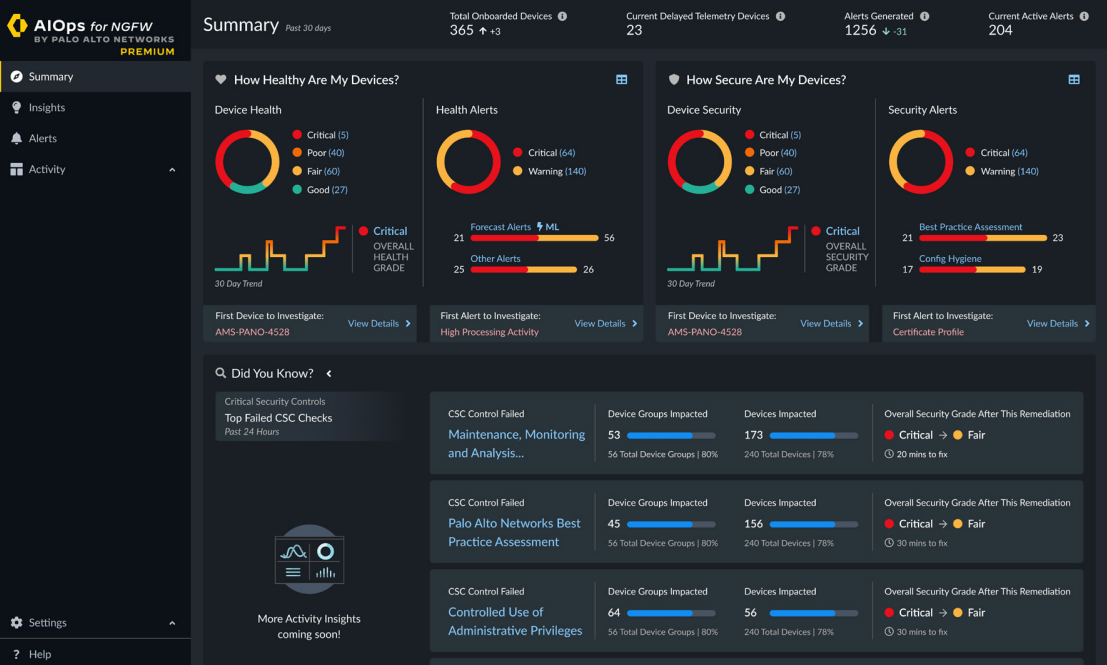 - Maximale Sicherheit: Mit Telemetriedaten von mehr als 100.000 NGFWs empfiehlt AIOps kontinuierlich Best Practices, um Ihre allgemeine Sicherheit zu verbessern