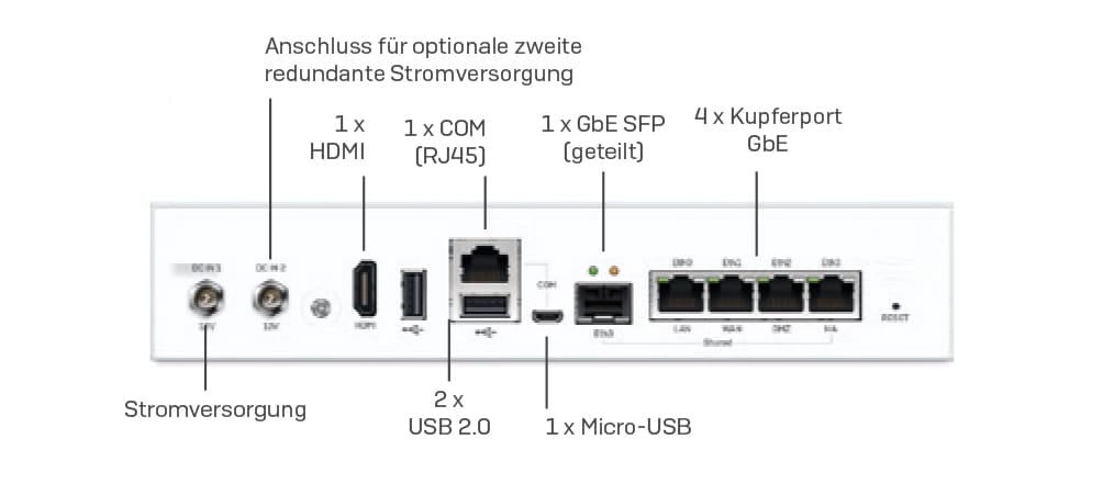 • Zum Anschluss an Unternehmensbreitbandverbindungen ist nun auf vielfachen Wunsch auf allen SG/XG 1xx Appliances ein SFP Port (z. B. für optionales DSL-Modem) verfügbar.