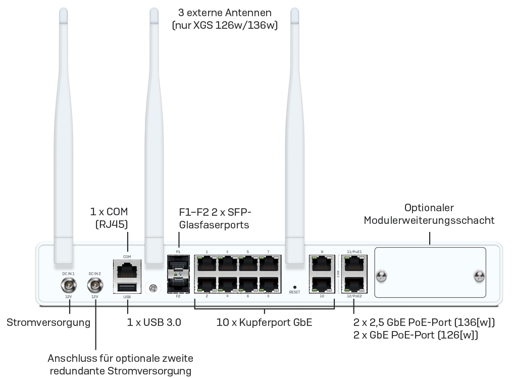 ** zweite WLAN-Modul-Option nur für XGS 116w, 126w und 136w