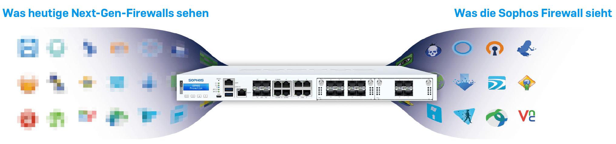 Die Sophos Firewall kann unbekannte Anwendungen dank Synchronized Security automatisch identifizieren, klassifizieren und kontrollieren. So können Sie unerwünschte Anwendungen blockieren und erwünschte Anwendungen priorisieren.