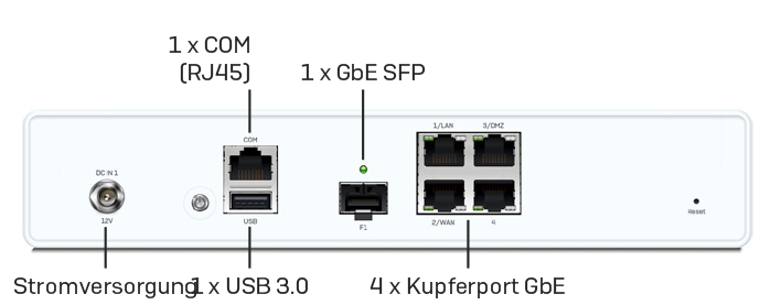 | Ethernet-Schnittstellen (fest) | 4 x GbE Kupfer 1 x SFP-Glasfaser (SFP-Transceiver separat erhältlich) |