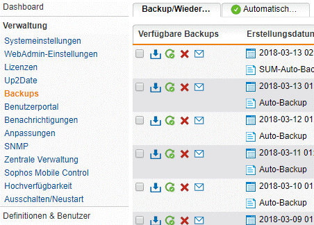 Erstellen und Wiedereinspielen von Backups in Sophos UTM