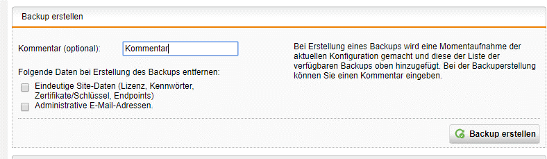 - Einen Kommentar zu dem Backup hinterlassen, um es nachher besser identifizieren zu können