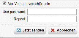 - Sie können die Backup-Datei vor dem Senden verschlüsseln und indem sie Vor Versand verschlüsseln auswählen und ein Passwort für die Datei eingeben.