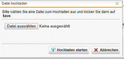 - Das Fenster Datei hochladen erscheint. Klicken sie auf Datei auswählen, wählen sie eine Backup-Datei aus und klicken sie anschließend auf Hochladen starten.