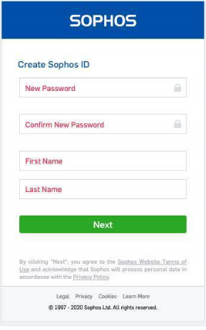 Schritte zum Erstellen einer neuen Sophos ID für neue User